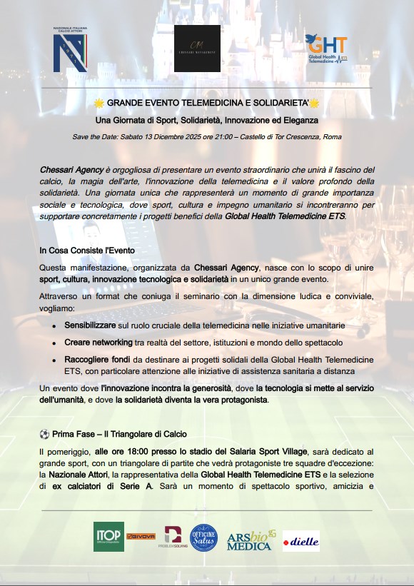 GLOBAL HEALTH TELEMEDICINE è una onlus che nasce dall'esperienza del programma Dream della Comunità di Sant'Egidio per la cura dell' HIV. Offre un servizio di teleconsulto medico, open source, gratuito, multidisciplinare che si avvale di un pool di specialisti italiani che prestano gratuitamente la loro consulenza. CONDIVIDI